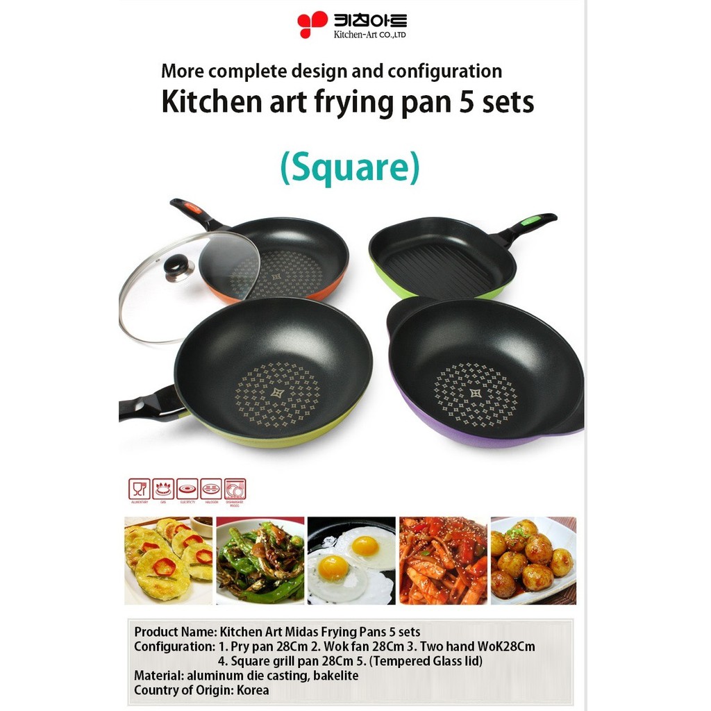Kitchen Art Diamond Ceramic Frying Pans 5 Set Korea Pot Wok