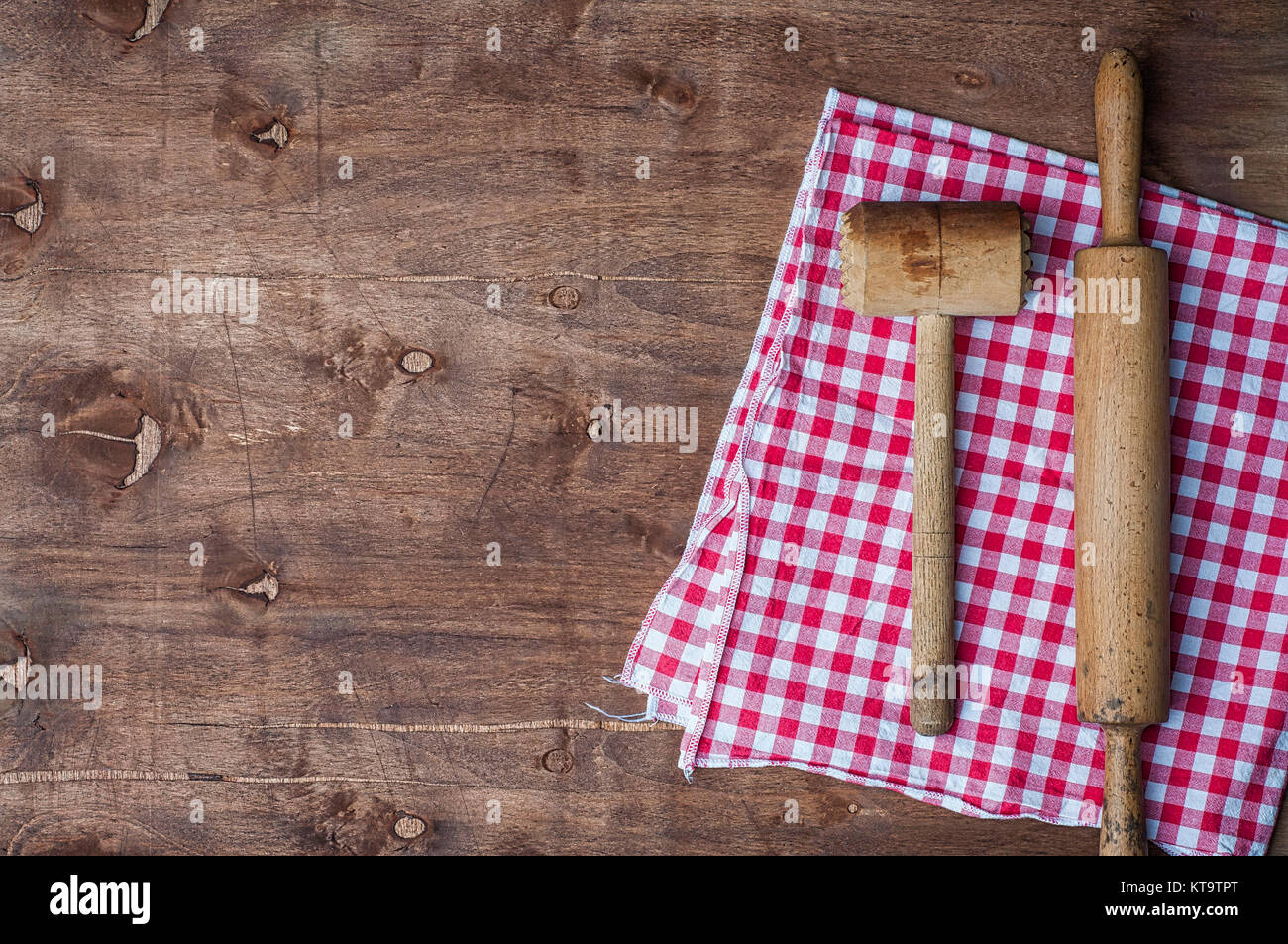 Les Articles De Cuisine En Bois Sur Une Serviette Rouge Rouleau A