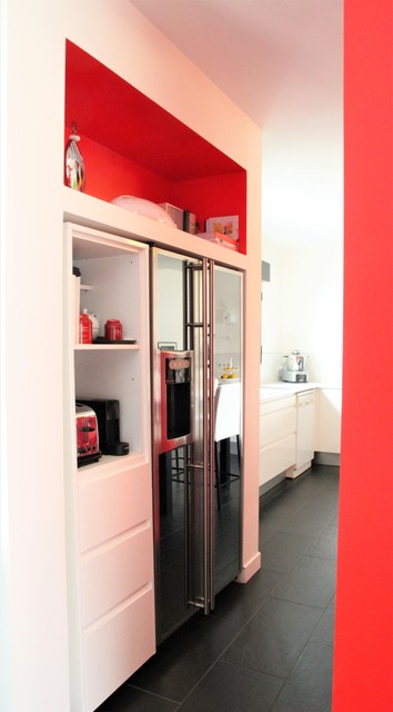 Cuisine Rouge Blanche Et Noire Contemporary Kitchen Paris
