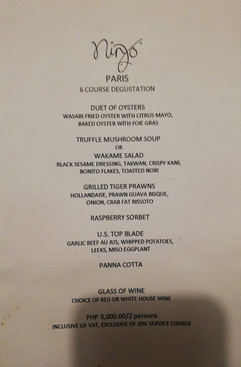 Menu Picture Of Ninyo Fusion Cuisine Quezon City Tripadvisor
