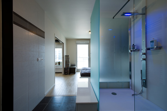 Une Douche Designe Avec Eclairage Led Milticolore Modern