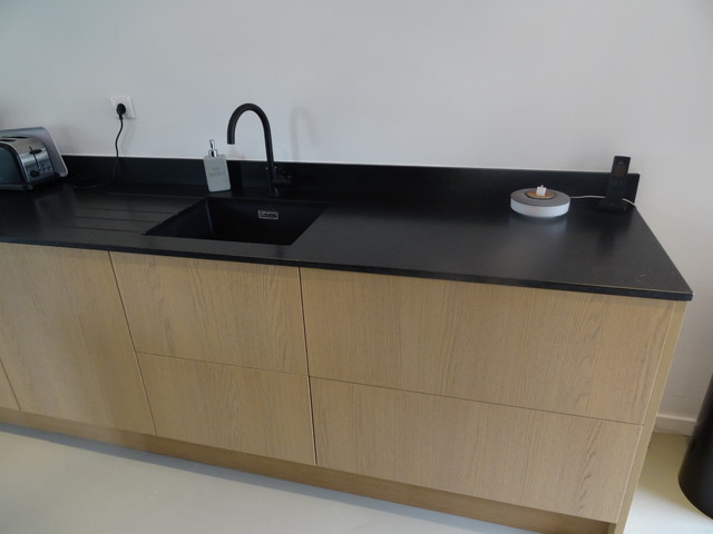 Cuisine Haut De Gamme Chene Flamme Naturel Plan Granit Nero