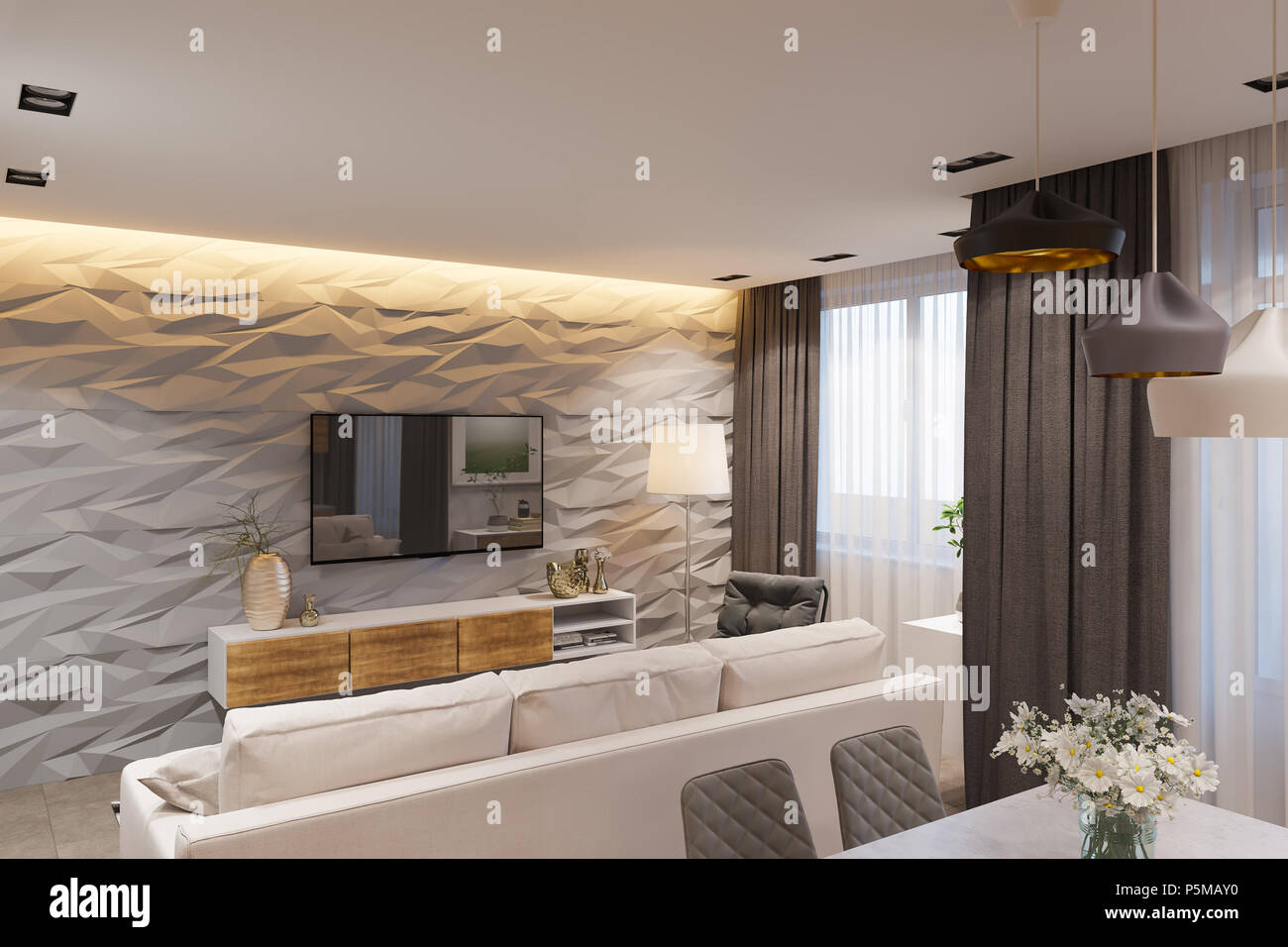 Int Rieur Moderne De Salon Uni La Cuisine Verte Dans Le Style