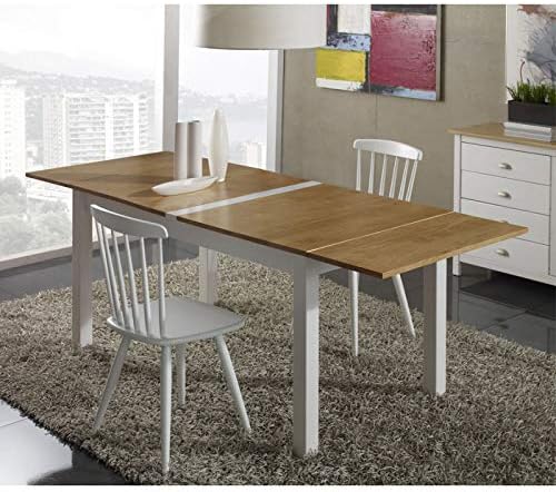 Tousmesmeubles Table De Repas A Allonges Blanc Et Bois Emie L