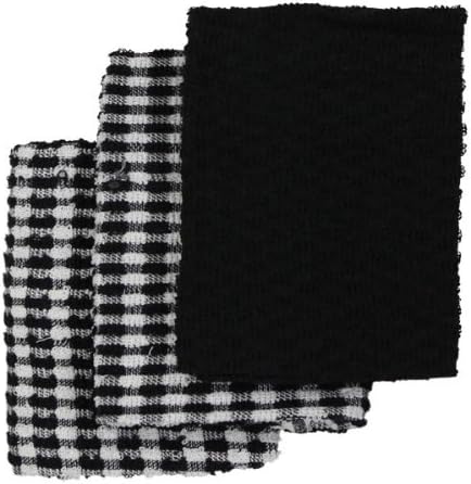 Lot De 3 Torchons De Cuisine Tissu Eponge En Coton Noir Blanc