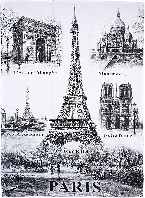 Torchon De Cuisine Collection Souvenirs De Paris Noir Et Blanc