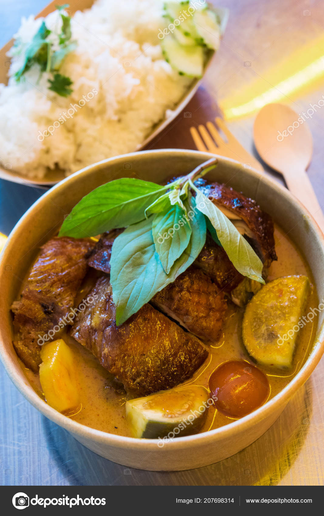 Traditionelle Thai Kuche Rotes Curry Mit Gebratene Ente