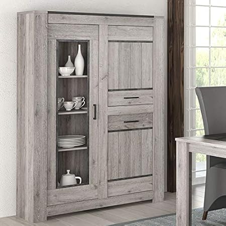 Kasalinea Vaisselier Contemporain 130 Cm Couleur Chene Gris Angus